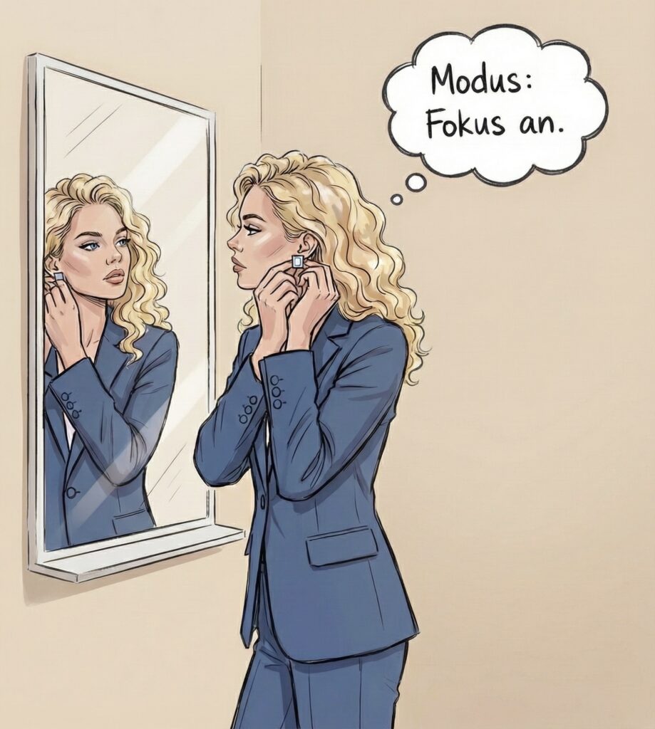 Ohrringe sind besonders mächtig, weil sie haptisch spürbar sind. Das leichte Gewicht am Ohr, das Klicken des Verschlusses – das sind sensorische Reize, die deinem Gehirn signalisieren: „Der Modus wechselt jetzt.“