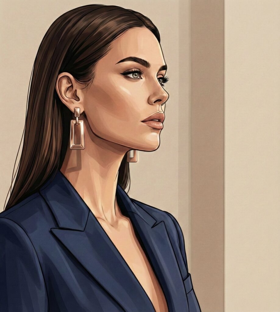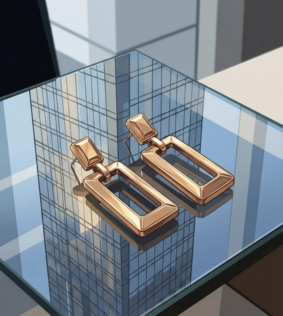Bei She Signals definieren wir rechteckige Ohrringe als das Werkzeug für Frauen, die in einem professionellen Umfeld nicht nur anwesend sein, sondern die Richtung vorgeben wollen. Die Form fungiert als visueller Anker für strategische Professionalität.