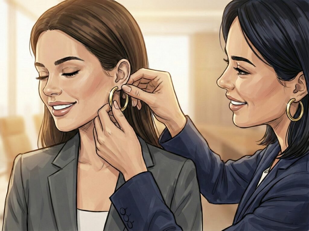 Echte Frauen. Echte Persönlichkeit. Keine Inszenierung. Ein „gut gewählter Hosenanzug“ wirkt nur, wenn er passt. Genauso ist es bei Ohrringen: Wir feiern, wer du wirklich bist, und unterstreichen deine natürliche Autorität oder Kreativität.